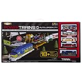 Add to your toy train collection! The Auto Loader City Set is the ultimate Power Trains set! Includes auto loader, tunnel, exclusive motorized engine car, and 4 rail cars. More than 18 feet of track! Create an awesome train world! Add to your toy train collection! The Auto Loader City Set is the ultimate Power Trains set! It includes the auto loader with 4 automobiles, a tunnel, an exclusive motorized engine car, 4 rail cars, and more than 18 feet (545 cm) of track to create an awesome train world. This Power Trains Auto Loader City Set is perfect for those special fans who love model trains! Motorized engine requires 2x 'AAA' batteries, not included. Ages 4 and up.