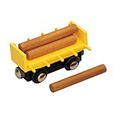 "Log Car" with Removable Logs. Made from 100% hardwoods with a plastic base. Comes complete with all pieces shown in the picture. Compatible with Thomas and Friends Wooden Railway, Brio and other fine Wooden Train Sets and Accessories. Backed by Maxim's Enterprises product lifetime guarantee.