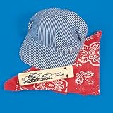 Little Train Engineer Set includes a Stripped Train Conductor Hat, Red Bandana and a Train Whistle.
